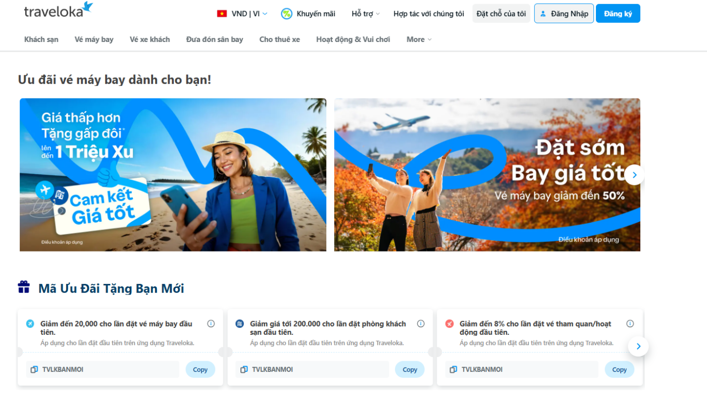 Traveloka là nền tảng du lịch trực tuyến hỗ trợ người dùng theo dõi và đặt dịch vụ di chuyển một cách chủ động. Nhờ hệ thống cập nhật dữ liệu liên tục và bộ lọc tìm kiếm linh hoạt, khách hàng có thể nhanh chóng nắm bắt giá vé máy bay Hà Nội vào Sài Gòn hôm nay, từ đó lựa chọn khung giờ bay và hãng hàng không phù hợp với ngân sách. Ngoài vé máy bay, Traveloka còn cung cấp các dịch vụ lưu trú, phương tiện di chuyển và tiện ích du lịch khác, kết hợp thanh toán an toàn và hỗ trợ khách hàng 24/7, giúp việc lên kế hoạch cho chuyến đi trở nên dễ dàng và hiệu quả hơn.